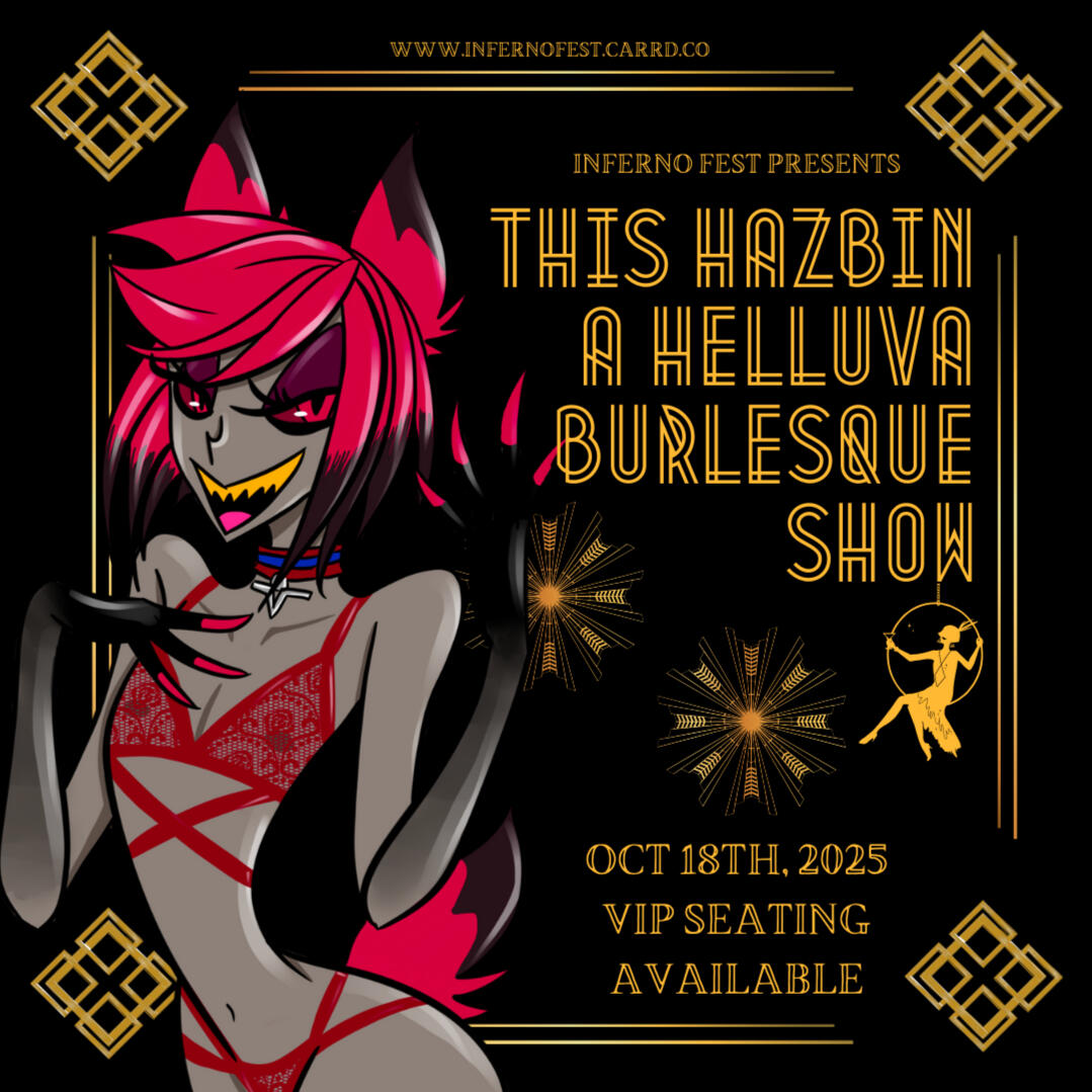 (Special Note: The Hellaverse fandom can sometimes be polarized due to the nature of the show and its depictions of morality, as well as ships within the show. Inferno Fest WILL NOT TOLERATE the harassment of attendees, staff, or vendors, or otherwise based on what characters they cosplay, what they decide to ship, even if you feel it is inappropriate, etc. If you feel that something triggers or upsets you, please remain calm and find a staff member to assist you. We care for your well-being, but, you must also consider the feelings of others as well!)4. ANY unacceptable behavior, including but not limited to stalking, unwanted photography, unwanted physical contact, or intimidation is not permitted.5. There is to be no removal of any decoration or signage by Inferno Fest or any of its venues.6. Do not cause damage to the property or venue. This includes but is not limited to marking on walls, damaging furniture or decor, or anything that would be consider vandalizing the venue or other people's property.If we find you in violation of these rules, you may be removed by security without a refund of your ticket. If the violation is serious enough we reserve the right to get law enforcement involved.-COSPLAY/ATTIRE RULES